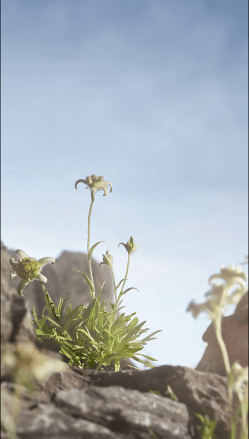 Edelweiss es una extraña flor de montaña que crece en ambientes Alpinos. Solo es encontrada a grandes alturas donde desafía condiciones ambientales extremas, incluyendo fuertes vientos, escarcha y extremas temperaturas.