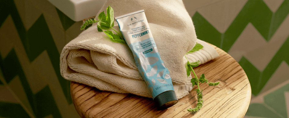 Nuestros pies nos llevan a grandes lugares. Así que creemos que se merecen un poco de mimo de vez en cuando. Por ello, hemos creado nuestra gama de productos para el cuidado de los pies con menta. Pero, ¿por qué la menta? Nuestra fórmula de menta fresca es refrescante, calmante y produce una agradable sensación de hormigueo. Empecemos a mimar tus pies con nuestro Exfoliante de Pómez Revitalizante de Menta. Está enriquecido con gránulos de roca volcánica exfoliantes para eliminar toda esa piel dura. Ahora que tienes unos pies suaves y sedosos, dale a tus pies un masaje hidratante con nuestra Loción Refrescante para Pies de Menta. ¡Por unos pies felices!