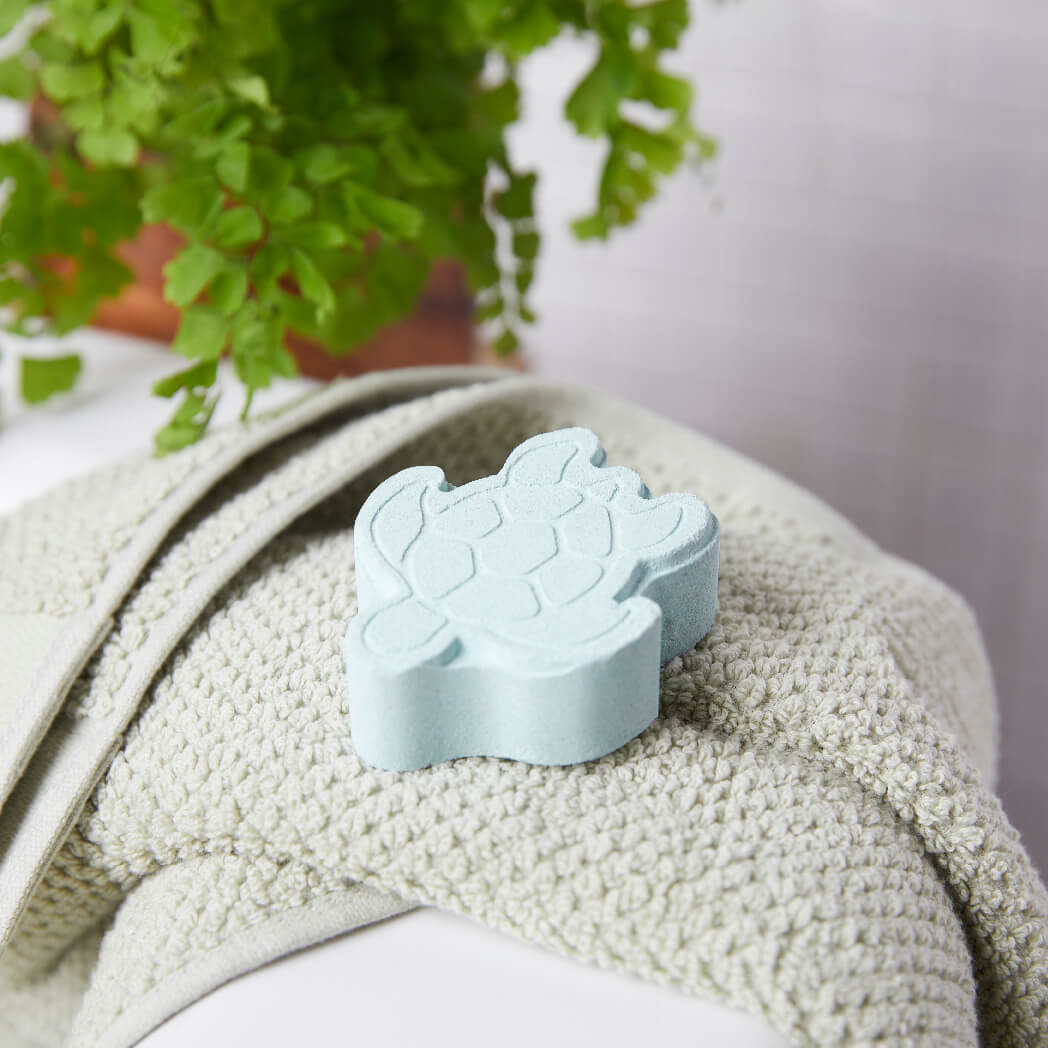Este tierno animalito ¡es la bomba! Haz que tu tina huela delicioso con el aroma a un mango bien jugoso. Con la forma de una linda tortuga, esta bomba de baño efervescente colorea el agua y hará que todo tu baño tenga un olor tropical. 100% vegetariano.
