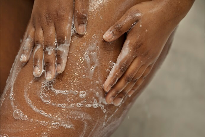 Enjabónate con un buen chorro de nuestra crema de ducha que hace mucha espuma. Deja que las burbujas limpien, suavicen y calmen la piel seca y tirante, dejándola sedosa e hidratada.