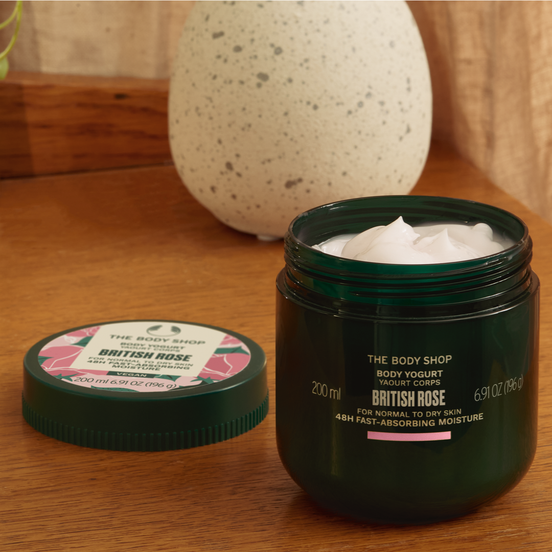 Duerme unos minutos más en la cama y sal más rápido por la puerta con nuestro Yogurt Corporal de Rosas Británicas. Se absorbe al instante (¡incluso sobre la piel húmeda!), por lo que puedes salir directamente de la ducha, hidratarte y continuar con tu día. Su fórmula favorita en un nuevo envase, certificada por The Vegan Society y elaborada con un 92% de ingredientes de origen natural, incluyendo manteca de karité de comercio justo comunitario y leche de almendras de comercio justo comunitario. Aplica una pequeña cantidad de este gel-crema ligero y no graso sobre la piel normal a seca para dejarla instantáneamente más suave, tersa e hidratada durante 48 horas. Además, huele como las rosas que florecen en verano (aunque estemos en invierno y hayamos olvidado lo que es el sol) y da a nuestro cuerpo un aspecto saludable. Casi lo olvidamos. Nuestros Yogures Corporales son reciclables* y ahora vienen en tarrinas de plástico 100% reciclado**, que incluyen plástico reciclado de comercio justo comunitario recogido de las calles de Bengaluru, India. Esto significa que puedes amar a tu planeta cada vez que amas a tu cuerpo. ¿Qué esperas? Métete en la ducha. Sal. Aplícate nuestro yogurt corporal de british rose. Ponte los jeans. Brilla y sigue con tu ajetreado día. El mundo no se salvará solo, ¿verdad? *Donde las instalaciones locales lo permitan. **No incluye la tapa.