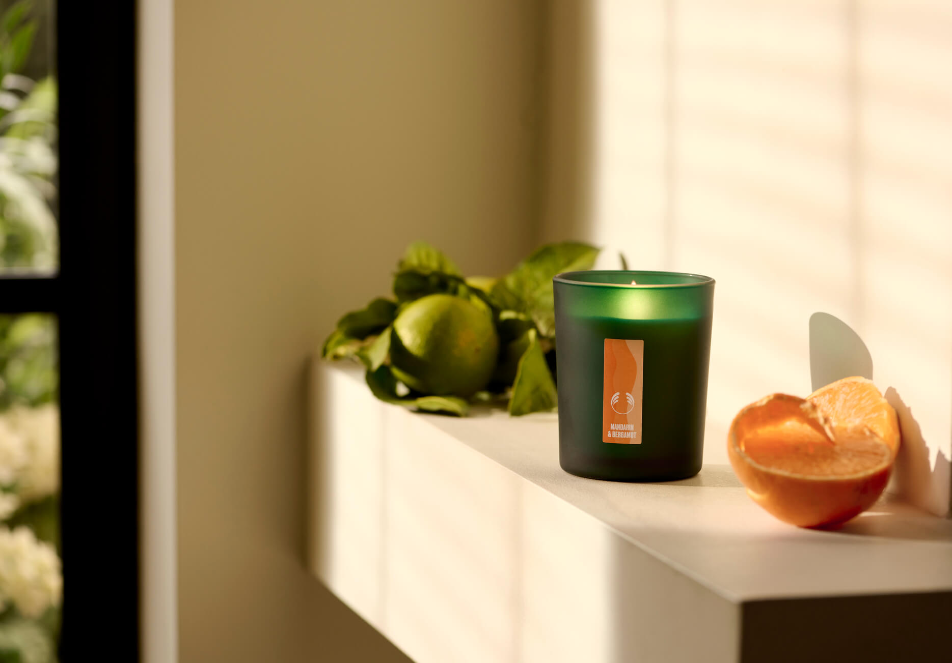 Pon un resorte en tu paso con el aroma energizante de nuestra vela perfumada Boost Mandarina & Bergamota.