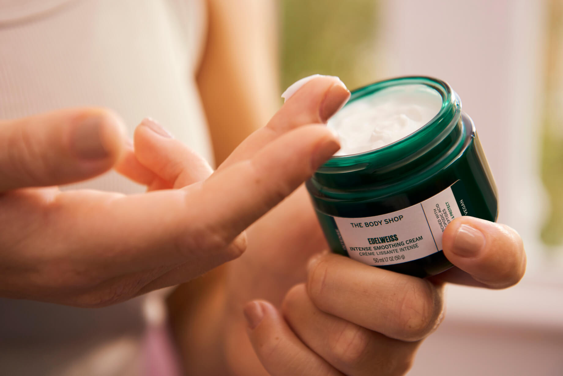 Dale a tu piel un tratamiento profundamente nutritivo con nuestra nueva Crema Facial de Día Intensa Suavizante Edelweiss - es la máxima inyección de hidratación para tu piel. Elaborada con ingredientes de origen natural, basta una pequeña cantidad de nuestra nueva Crema Intensa Suavizante Edelweiss para que la piel luzca más suave, más fresca, más fuerte* y más hidratada durante 48 horas. Si no pregúntale a las 109 mujeres que probaron (¡y les encantó!) nuestra nueva crema hidratante en un estudio independiente**. Esta crema intensamente rica y nutritiva, de textura sedosa y no grasa, se funde en la piel sin esfuerzo, ayuda a protegerla de la contaminación interior y exterior y deja la piel profundamente nutrida, más firme y ultrasuave. Esta crema ultrasuave está enriquecida con edelweiss, que está reforzada de forma natural (y bastante única) con ácido leontopódico, conocido por sus propiedades antioxidantes. De hecho, la diminuta planta edelweiss es tan resistente y poderosa que su extracto tiene un 43% más de poder antioxidante que el retinol.*** Extraordinario, ¿verdad? También hemos reforzado nuestra crema vegana con péptidos de origen natural. Ayuda a retener la humedad y mantiene la barrera natural de hidratación de la piel. Y una sorpresa más: nuestro tarro reciclable **** ahora también está hecho de vidrio reciclado. ¿Qué más se puede pedir? Aplica una cantidad del tamaño de un guisante y extiéndela por todo el rostro de día y de noche. Disfruta de una piel suave y sedosa.