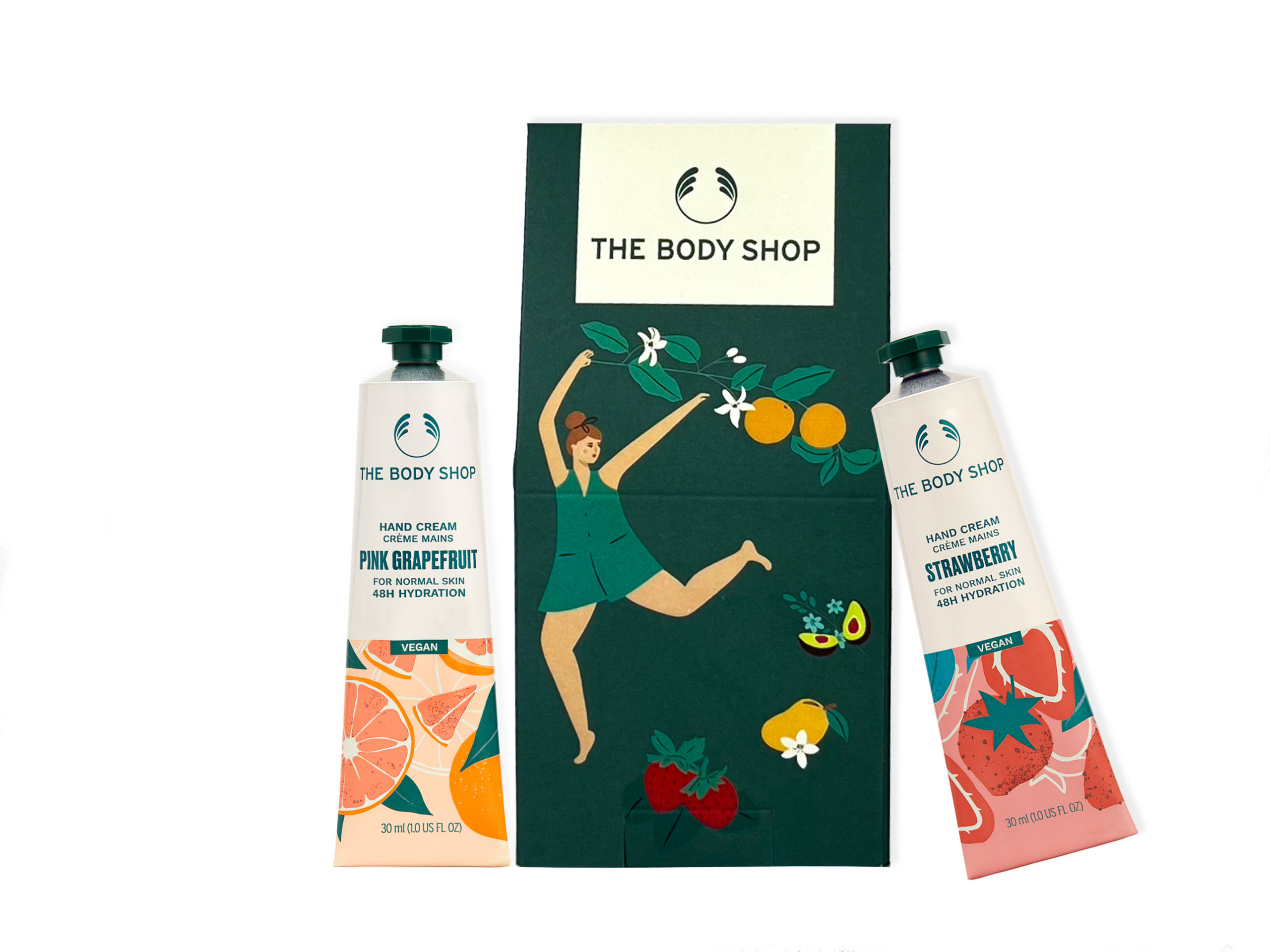 - Contiene 2 cremas de manos de 30ML cada una, de Pomelo Rosa y Frutilla.