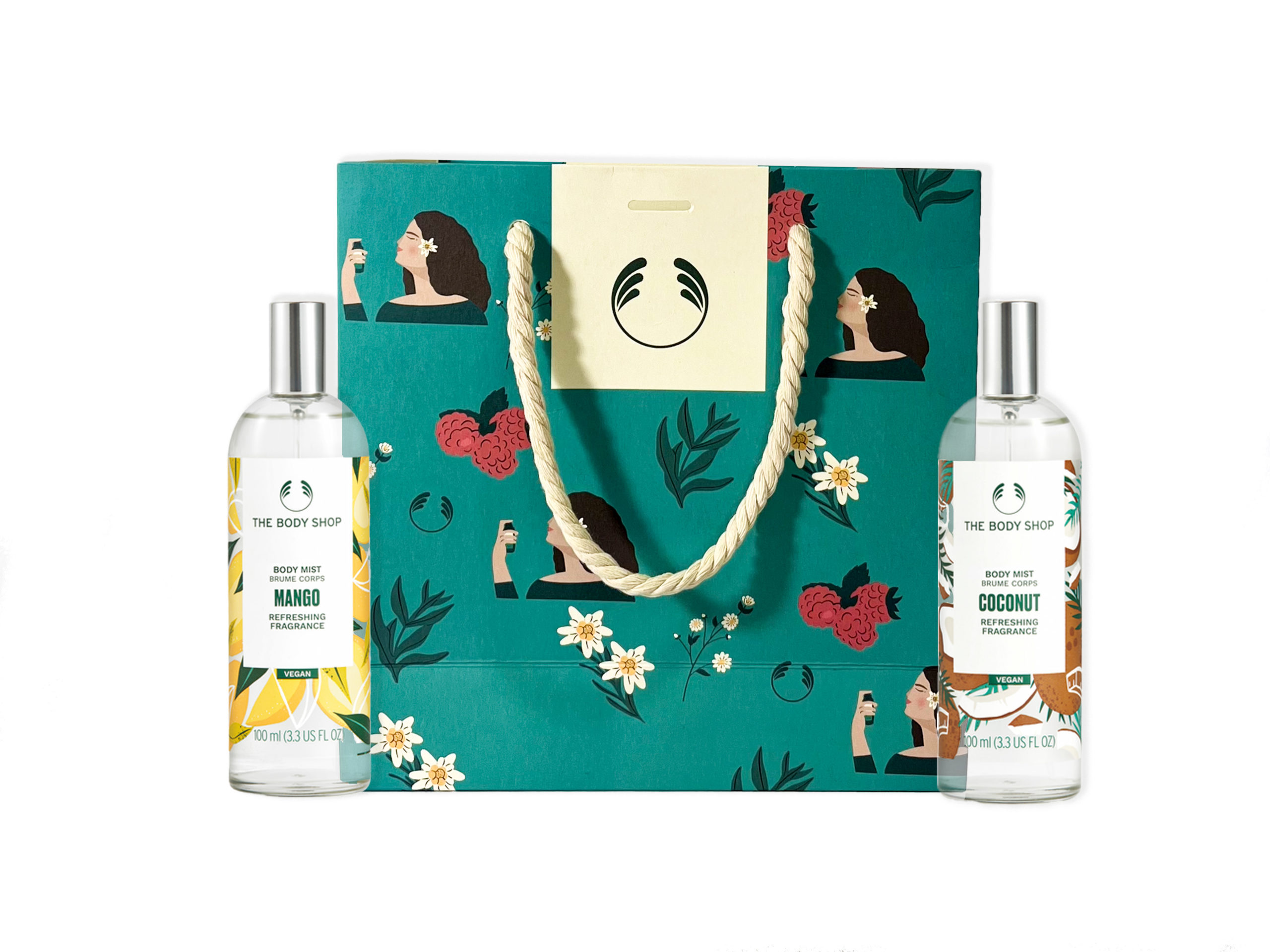 Viaja a una isla tropical y vuelve al verano mientras te rocías con estas brumas corporales ligeras y de aromas refrescantes con nuestro Regalo Dúo de Fragancias Tropicales, que incluye dos deliciosas brumas corporales de Mango y Coco, cada una elaborada con ingredientes de origen natural y certificadas por The Vegan Society. ¡Son simplemente irresistibles!