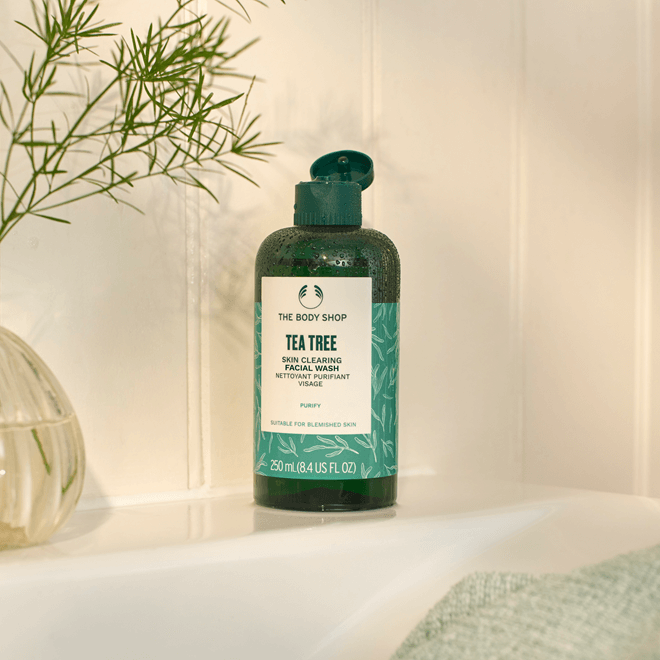 Nuestro Limpiador Facial Purificante de nuestra línea Tea Tree contiene aceite de árbol de té de Comercio con Comunidades y es perfecto para limpiar pieles propensas a imperfecciones. Su refrescante espuma elimina las impurezas y el exceso de sebo haciendo que sientas la piel limpia y purificada. Úsalo a diario para lucir una piel matificada y con menos brillos e imperfecciones.